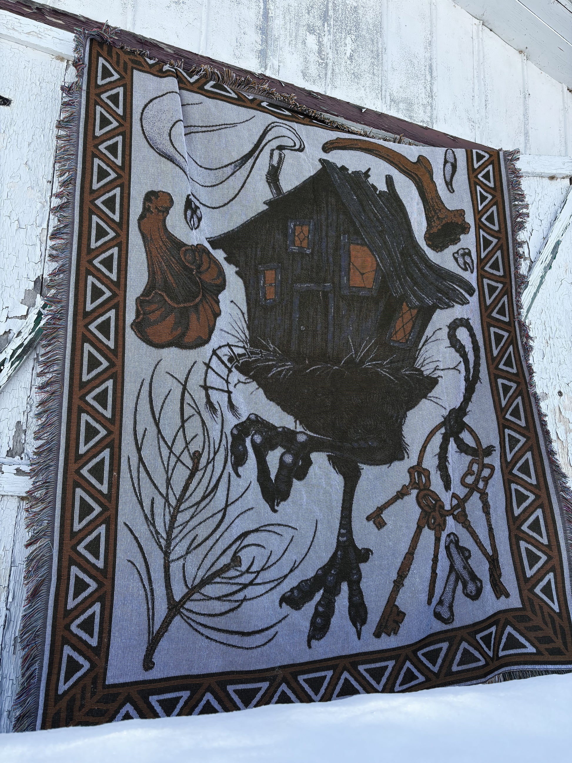 Original art woven into a 100% cotton tapestry blanket. Perfect for cloaking your haunted sofa, laying down for ritual picnics, or hanging as wall art in your hermit’s den.