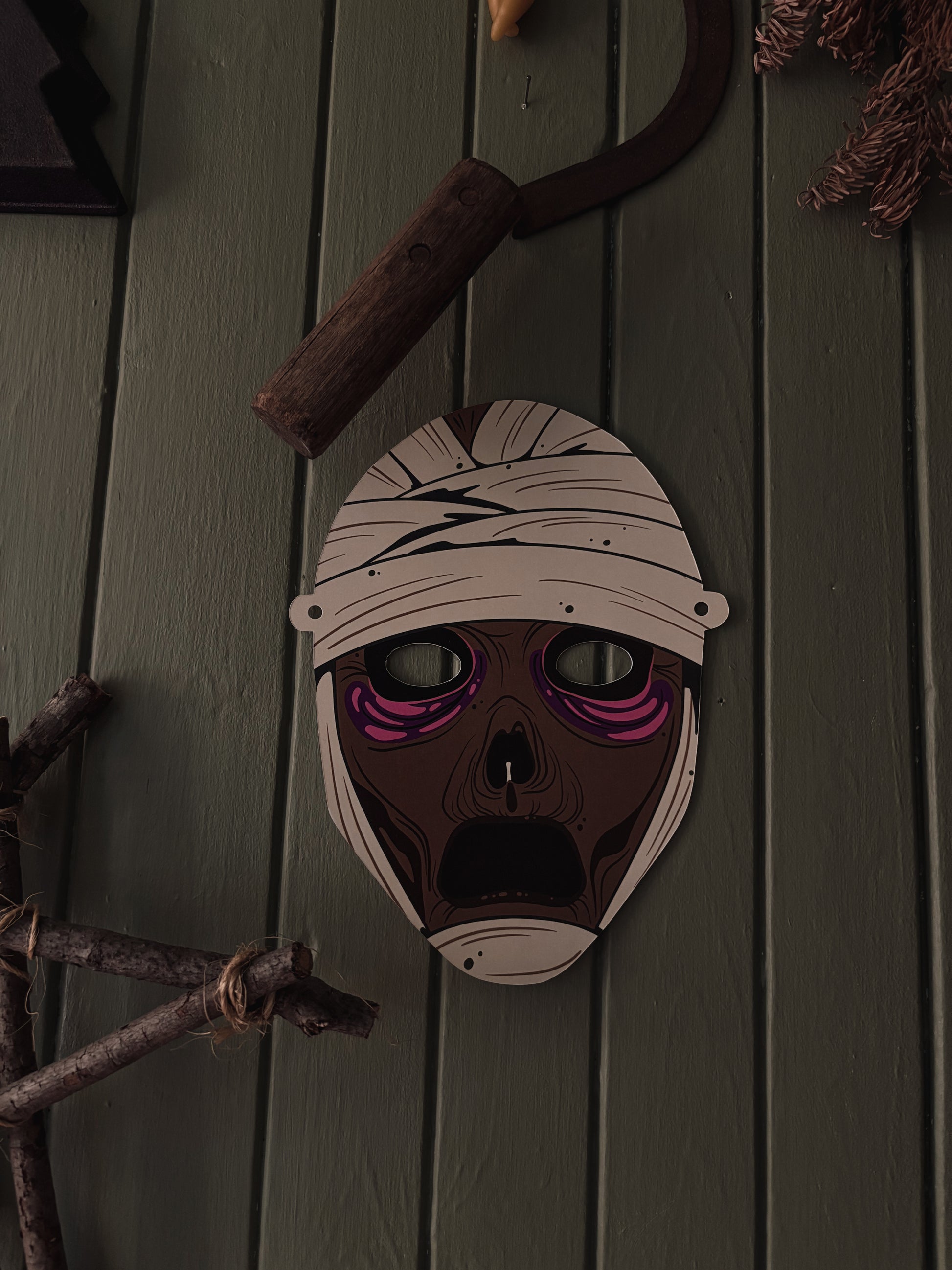 Includes 4 masks and a piece of thread to cut or use as a garland